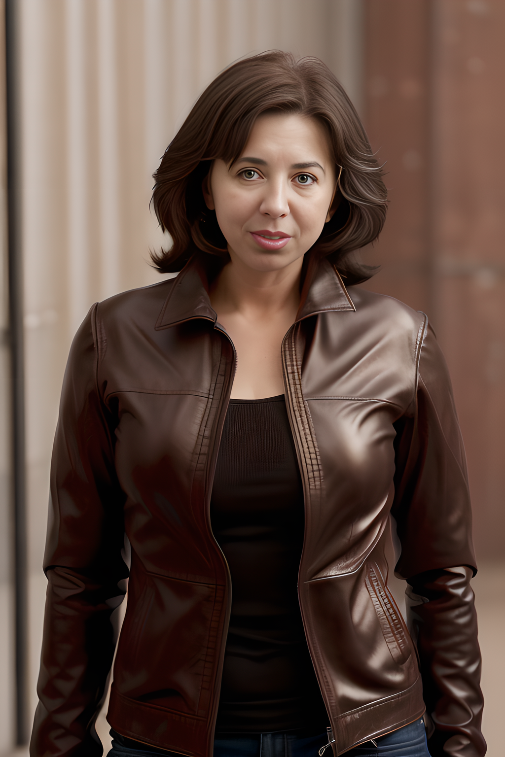 memav1, older woman, brown leather jacket, dramatic light, realistic, highly detailed, <lora:MeanMary_memav1:0.8>
