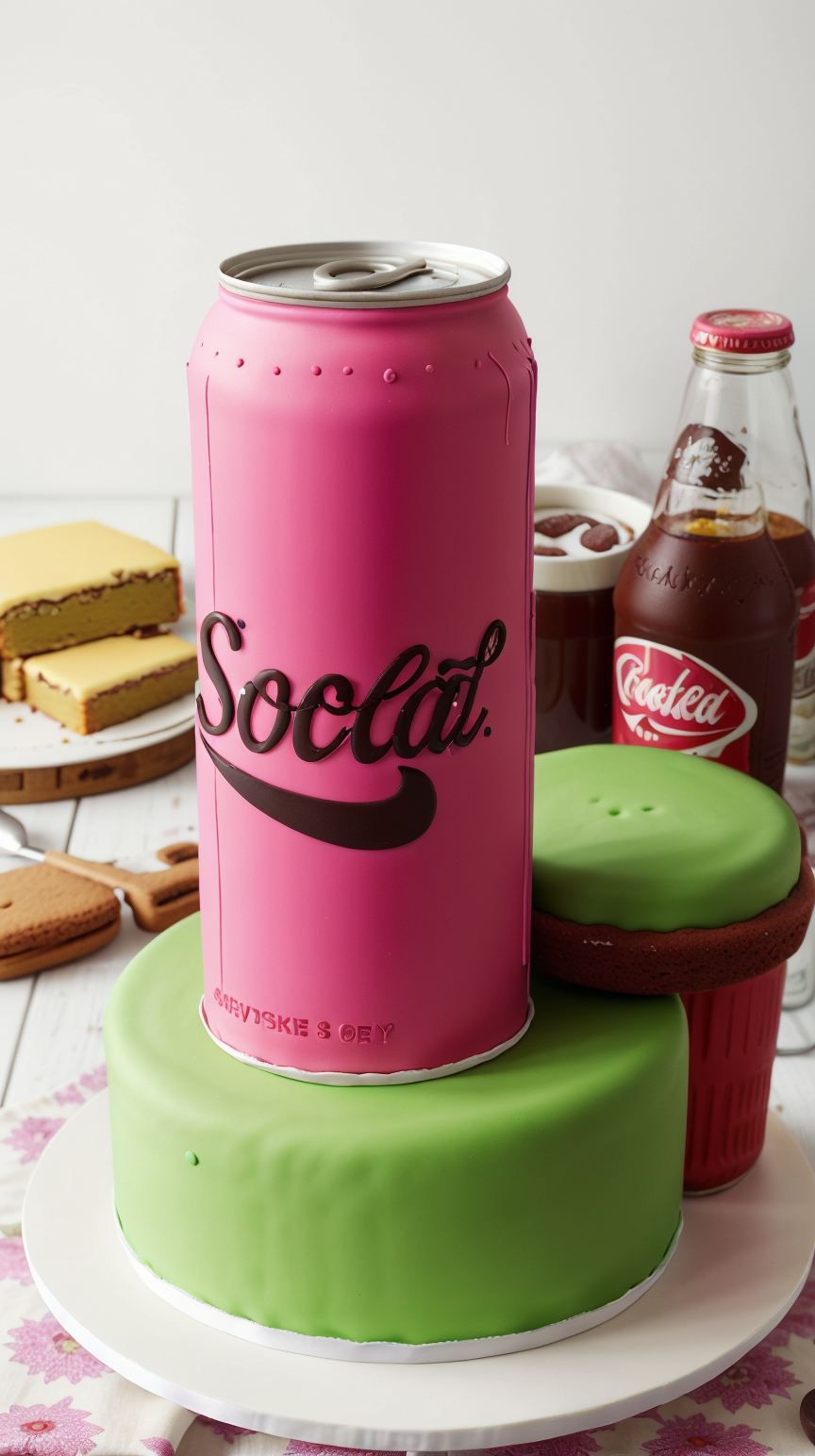 CakeStyle Soda can. Marzipan cake shaped like Soda can. <lora:CakeStyle:0.55>
