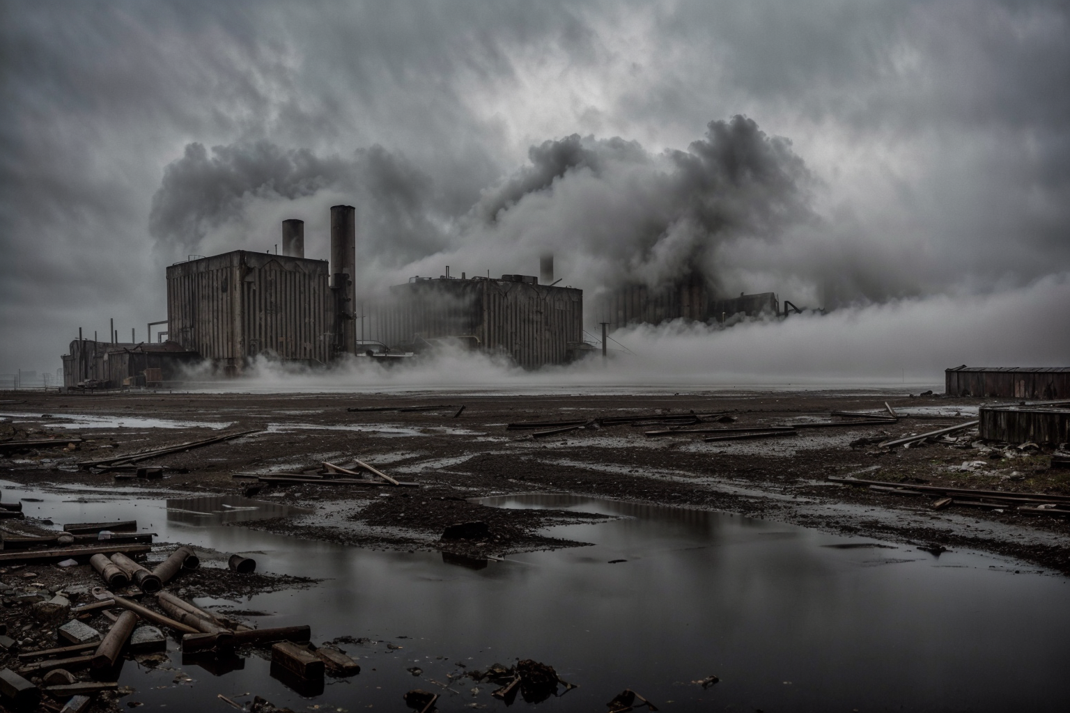 a movie still of landscape of industrial ruins, cinematic, fog, gloomy, dark, scary, master piece, dramatic light, ultra detailed, ultra high quality, sharp focus, 8k uhd, dslr, soft lighting, high quality, 25mm f1.4, film grain, fujifilm xt3, by Andrei Tarkovsky <lora:XSArchi_135Ruins sceneåºå¢åºæ¯:0.4>