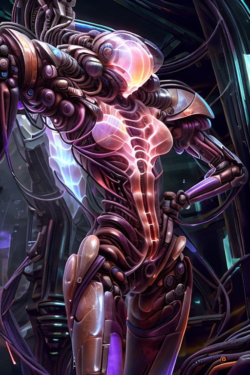 waist-length portrait, a woman pale Crab, posing for fashion, ((long neck, slender arms)) biopunk armour, (luminesce purple hues glowing) scifi, highly detailed, 8k