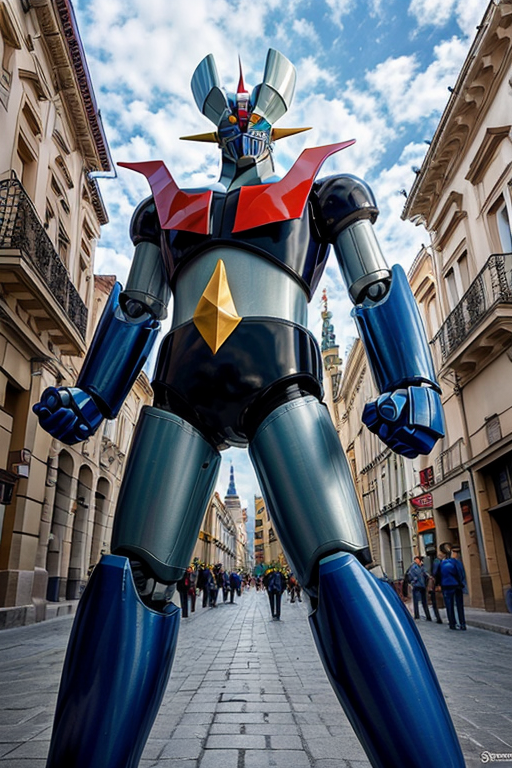 (masterpiece, best quality), high resolution, (8k resolution), (ultra detailed), mazinger z robot <lora:mazinger02:.7> destroying burgos city