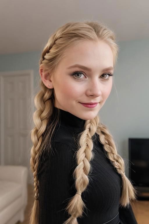 (the rule of thirds), disney frozen animation movie,masterpiece, highres, 4k, 1girl, blush, solo, photo, photography, anna frozen, very close,indoor princess room,simple background photo, (((wears black dress)), ((ultra sharp, tack sharp)), <lora:elsa_of_arendelle_v1:0.8>,elsa_of_arendelle,single_braid, elsa \(frozen\), eyelashes, eyeshadow, hair tie, lips, looking at viewer, makeup, nose, dark lips, single braid, flower in hair, closed mouth smile,living room