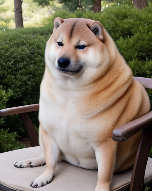 <lora:Round_animal:.8> a cinematic portrait of fat rotund, circular, round animal, cheems shiba inu outdoors sitting on a chair <lora:Cheems_50_2-000001:.8>