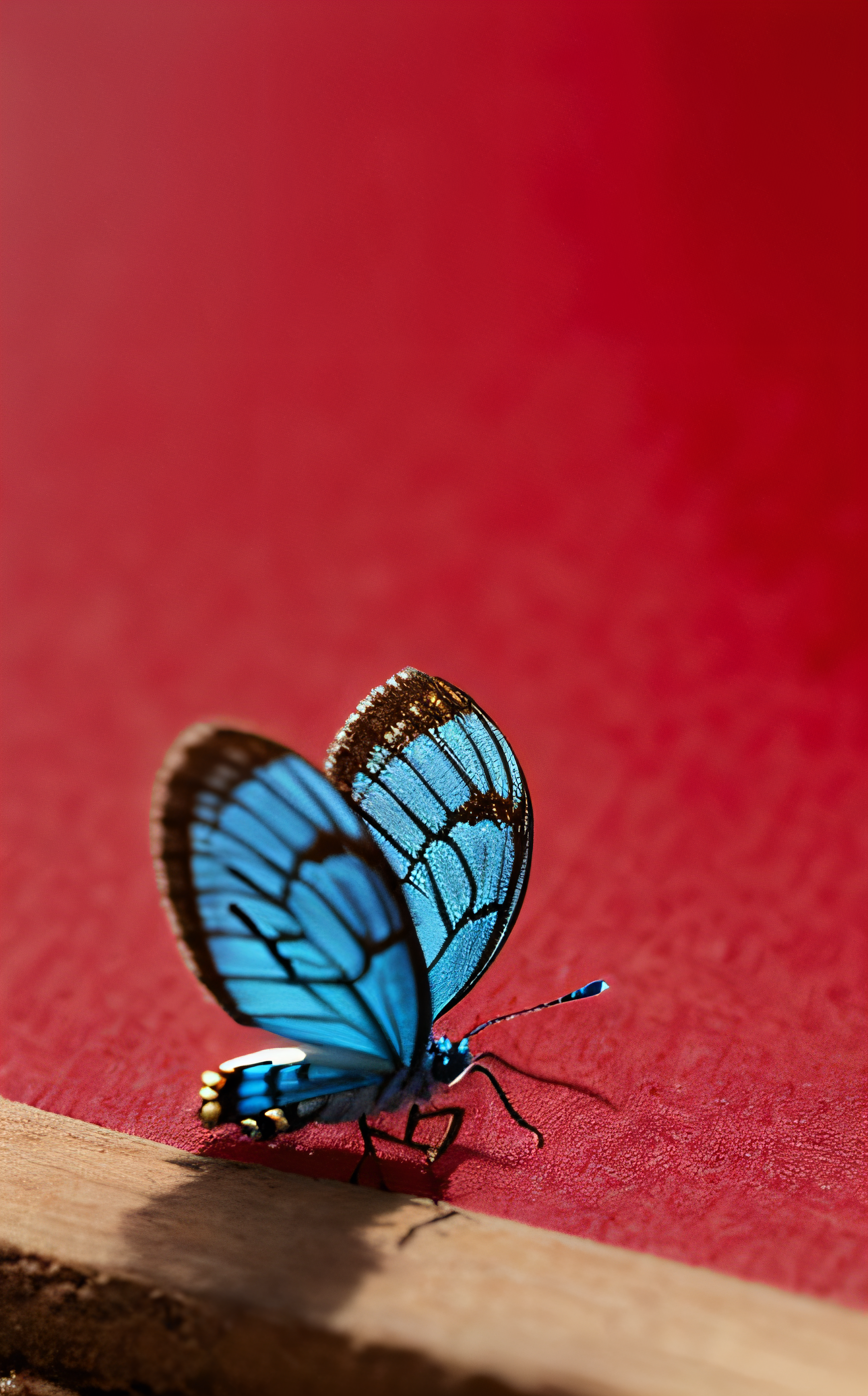 Tilt-shift photo of blue butterfly, , masterpiece, best quality, . Selective focus, miniature effect, blurred background, highly detailed, vibrant, perspective control