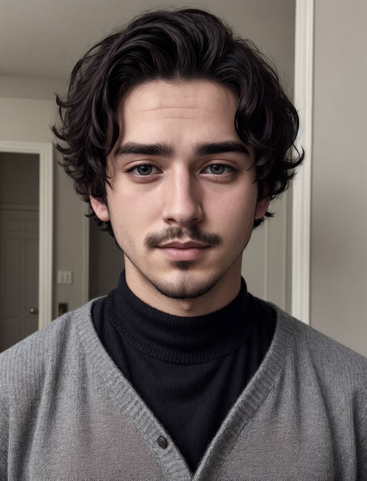instagram photo, closeup face photo of 23 y.o man in black sweater, cleavage, pale skin, <lora:Jaimie_OC:0.5> jaimie, black_hair, facial_hair