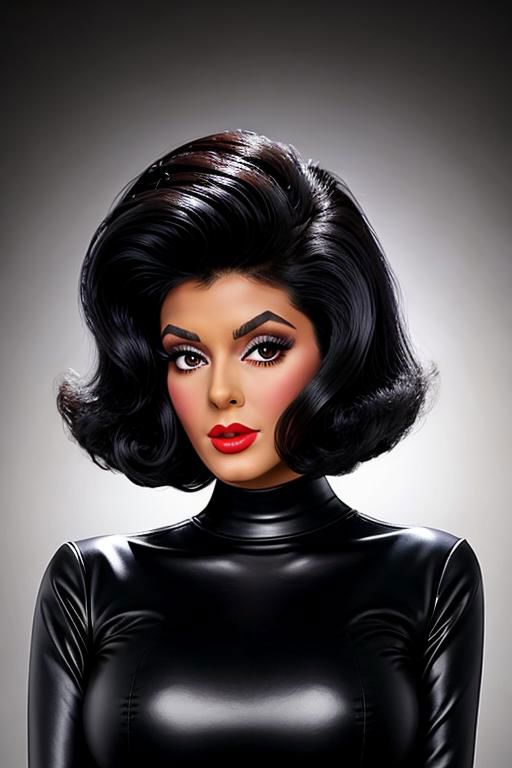 (big bouffant dark brunette 60's short bob hair:1.3), retro-girl, a woman wearing a sweater, thick eyebrows, puffy lips, red lipstick, blush, heavy makeup, smirk, (high detailed face:1.1), <lora:add_detail:1>, (huge jet black 60's hair:1.3) (pale skin:1.3), <retrobunny:1.45>, (huge jet black 60's hair, huge jet black 60's bouffant hairstyle, huge jet black 60s hair, huge jet black flip hairstyle, huge jet black hair flip, huge jet black very big 60s bouffant hairstyle:1.3), (high detailed skin:1.1), dynamic pose, eye contact, masterpiece, best quality, highly detailed, intricate details, detailed skin, detailed face, realistic, perfect anatomy, space background