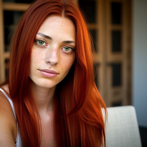 women , age 18 in a pose, , eyes naturel brown , very beautiful , tits percing and slim body naturel ,long red rush hair,freckle naturel