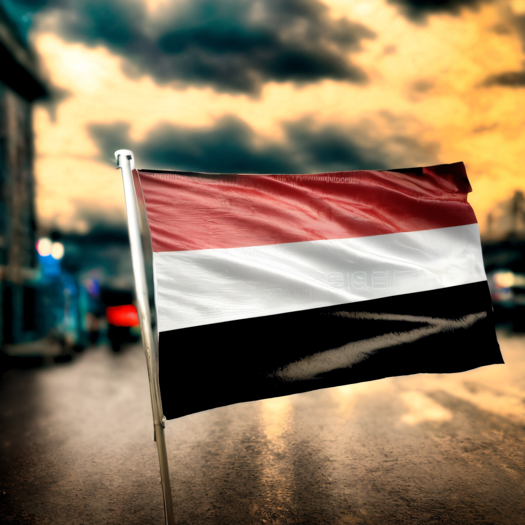 the Yemen flag,YemenFlag,Hyperrealistic,Hyperdetailed,realistic,masterpiece,best quality,ultra realistic,High Detail,<lora:AsiaFlags01-000002:1>,Cinematic Lighting,in winter,rain,rainy days,cloudy,city,cityscape,street,