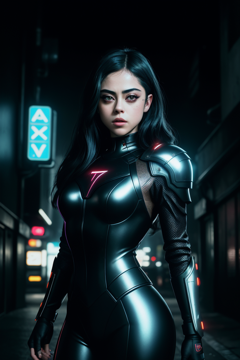 photo of seductive (Ros4S4l4z4r:0.99), a woman as a sexy cyborg, closeup portrait, (80s hairstyle), (cyberpunk black metallic liquid armor), in an (80s style) noir movie, (dark alley:1.1), (arm cannon:1.1), (masterpiece photorealistic painting:1.1) (bokeh) (best quality) (detailed skin texture pores hairs:1.1) (intricate) (8k) (HDR) (wallpaper) (cinematic lighting) (sharp focus), (big eyes), (dark atmosphere), (neon signs)