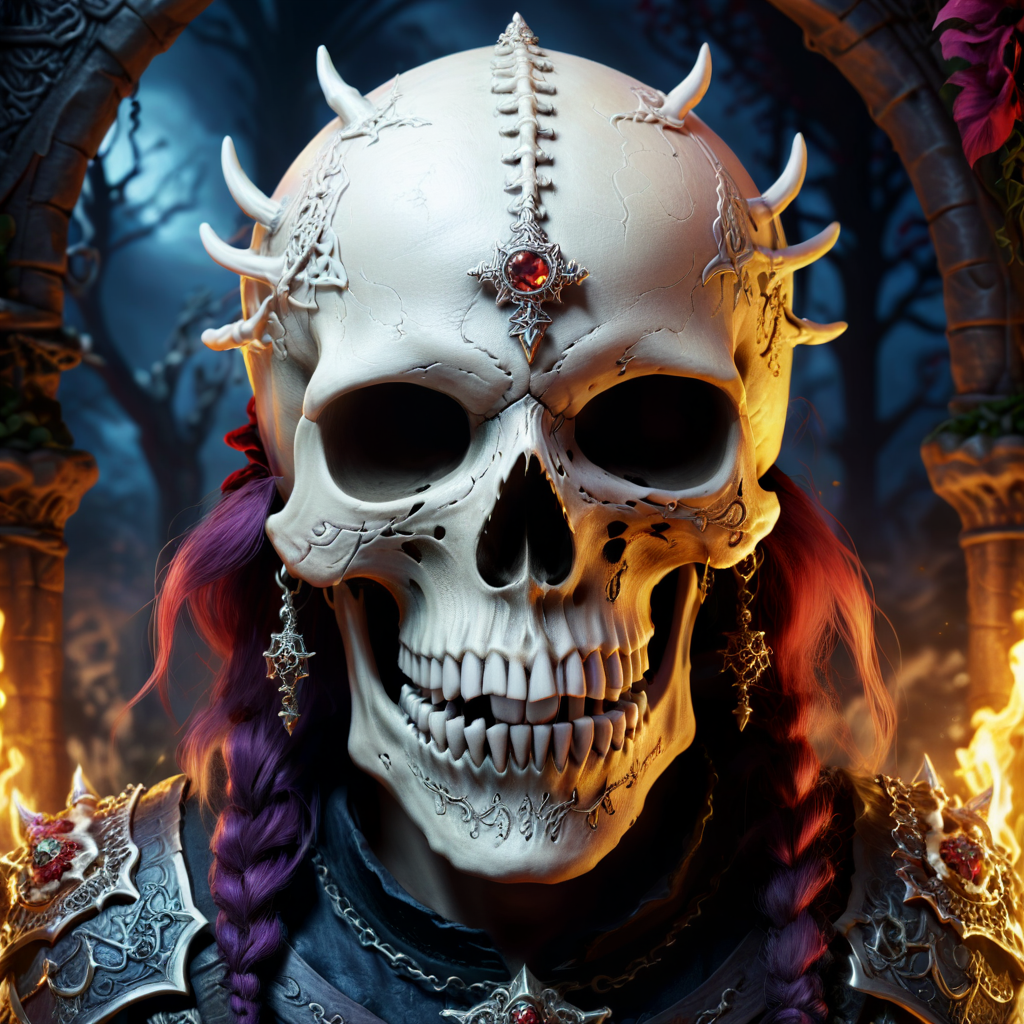 Role-playing game (RPG) style fantasy skull, bones, gothic, intricate details . Detailed, vibrant, immersive, reminiscent of high fantasy RPG games <lora:add-detail-xl:1> <lora:xl_more_art-full_v1:1>