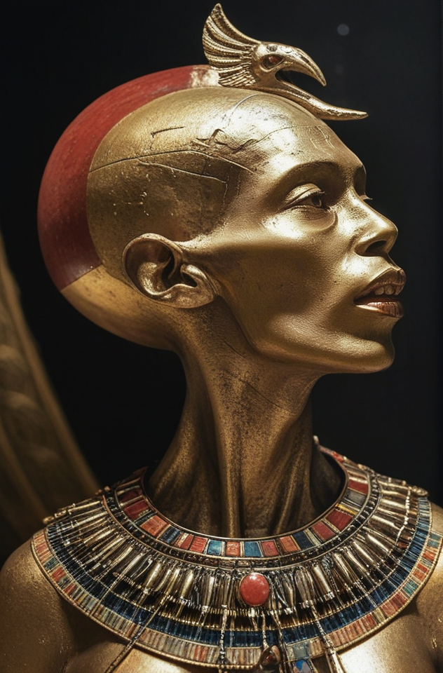 ((Introduce quality iteratively))(((3/4 side view photo extremely exaggerated war-scream warcry expression)))((analog photo from the shared mind visualization of adult redhaired thick curly hair Ancient royal Egyptian goddess with conehead elongated skull cranium homocapensis in celestial supernal empyreal lofty elevated mansion perfect in form face elegance eloquence panache class)(extramission depth of field)( sharpness)(abysmal black point)(art of genius)(elegant gradients)((1970's film colors complementary saturated hues))((dark corners vignette)) <lora:LCM-LoRA-XL_V1:0.21> <lora:SDXLHighDetail_v5:0.3>