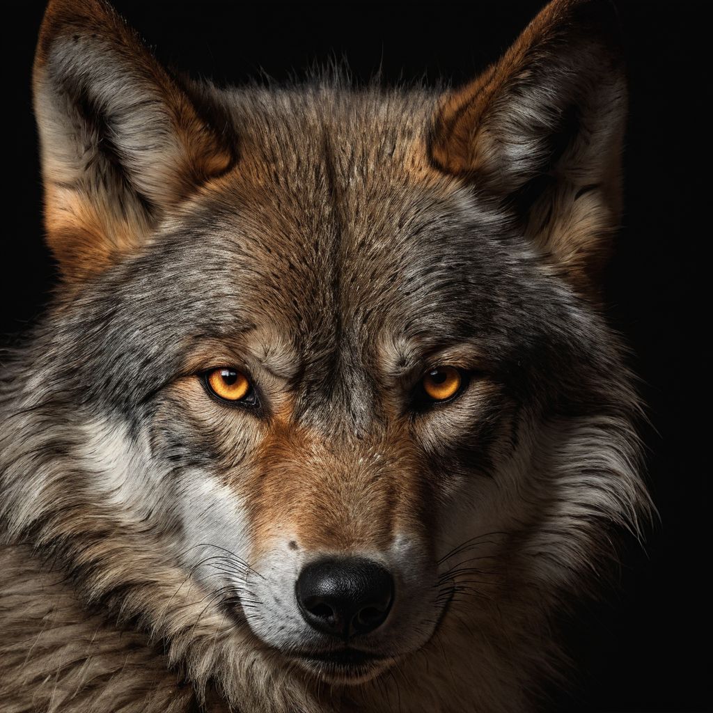 (fire on wolf), burning fur, closed up look of the wolf's face, dark studio, rim lighting, two tone lighting, dimly lit, realism, (((master piece))), (((highly detailed))), (((high res))), best quality, mdjrny-v4 dark studio, rim lighting, two tone lighting, dimly lit, low key, perfection style