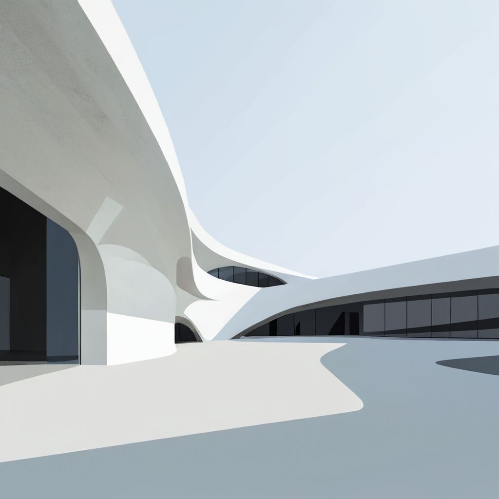 Abstract museum building, contemporary architecture design by Zaha hadid, contemporary minimal design, modern illustration style, flat shade, fresh colors <lora:Flat-XL:0.68> <lora:FormFinder-XL_v2:0.5>