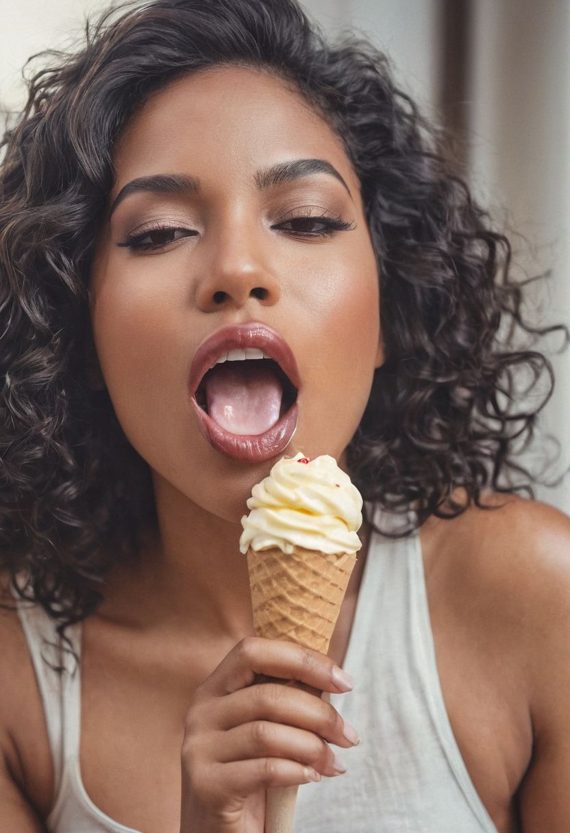 Faded Polaroid Photo, (dynamic pose:1.2),(dynamic camera),Fine art photography, (amateur photo,seducive,shy), (analog photo:1.2,film grain),(natural cold light:1.2),an ebony woman of 29yo with thick lips,licking an ice cream, clothes made of creamy white fluid, lots of black thic wavy hair,laugh,waves hair,wind,,vivid colours,realistic,photographic, (natural colors, correct white balance, color correction, dehaze,clarity), background rich in details, conceptual image,masterpiece, award winning photography, (lightroom:1.13), soft light, (natural skin texture, hyperrealism:1.2), sharp focus, focused, analog, thick lips,erotic,pornographic,sexy,licking,seductive,closeup of face and lips,orgasm,messing,messy