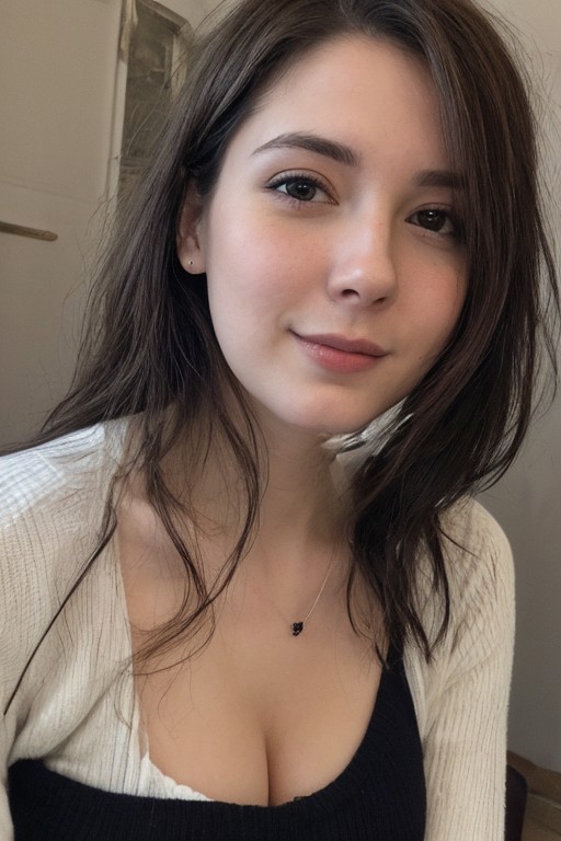 instagram photo, closeup face photo of 23 y.o Chloe in black sweater, cleavage, pale skin, (smile:0.4), hard shadows