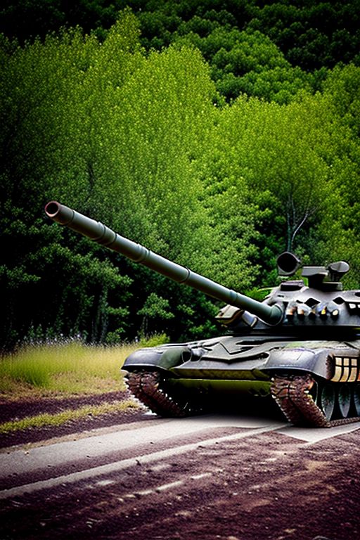 T72TANK, summer green plain background, front view, close look, ,best quality, sunny day. fire around, (tank in the forest), looking at viewer