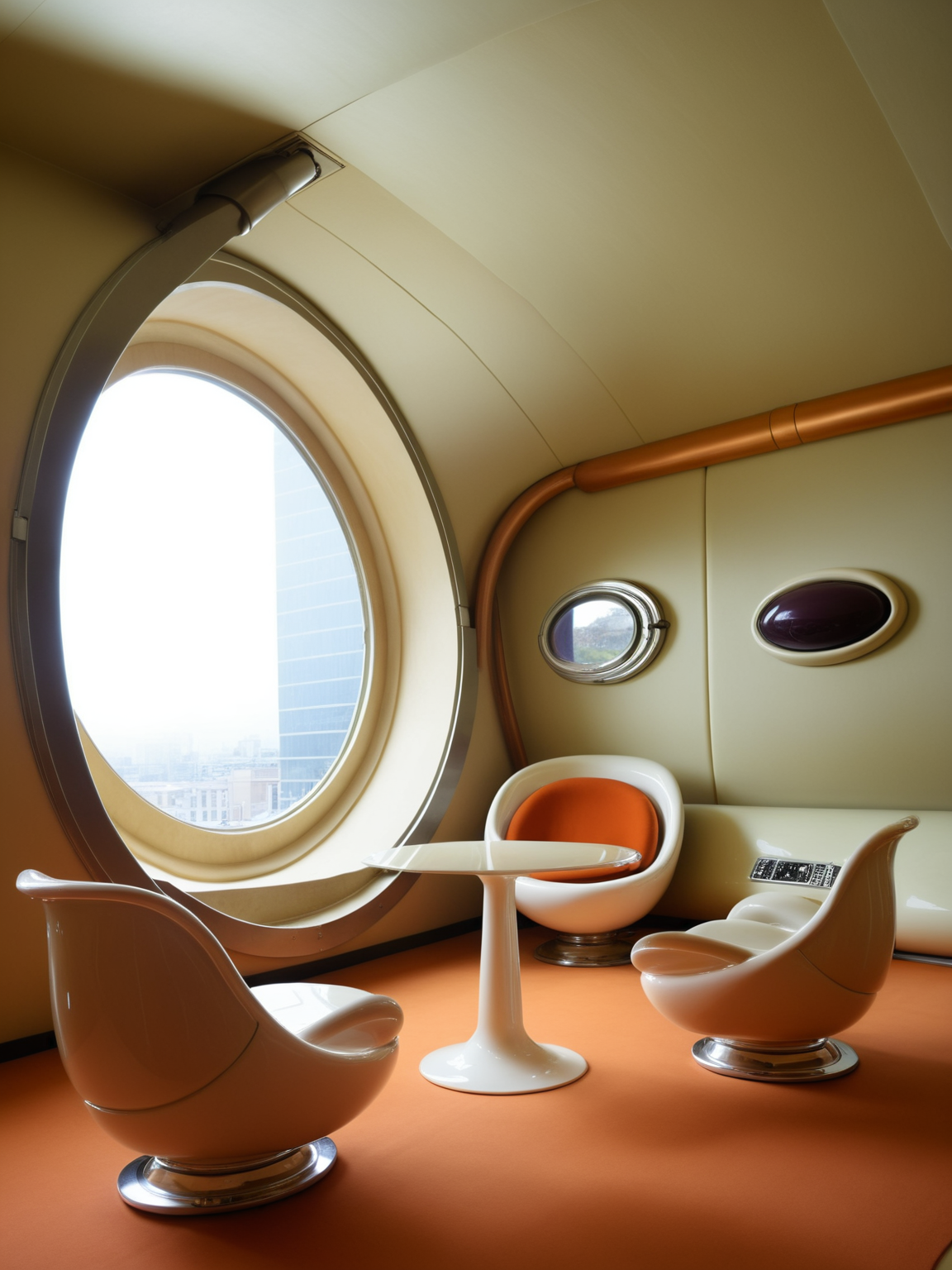 <lora:JJsRetroFuturism_XL:1>, ((Retro Futurism)), ((masterpiece)), ((best quality)), real world location, realistic, high detailed, (indoor) , no human, floor, ceiling , window, chair,