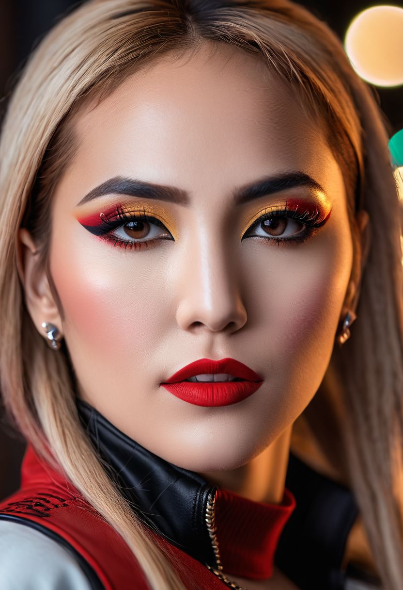 <lora:lora_jennifer_lopez:1.1>, professional photograph of sks woman, ((detailed face)), (High Detail), Sharp, 8k, ((bokeh)), jennifer lopez as harley quinn, very realistic, high detailed, 8k