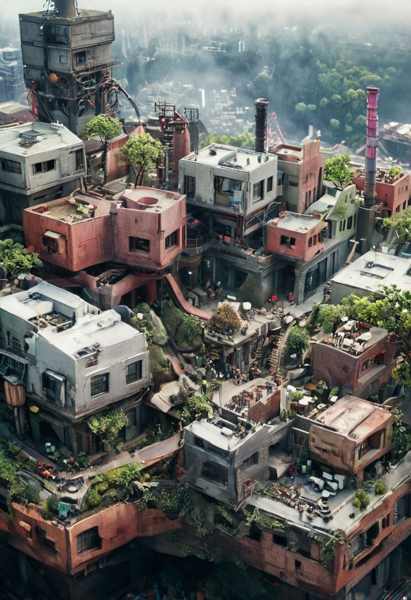 (A BUILDING MODEL MADE BY HAND, tilt-shift photography, the photo shows urban scenery, EXTRA LONG SHOT:1.3), (pastel neon niji colors, terraforming mecha-Pyramid Like drdnght machine hovering above planet earth 20000 bc, Tower of Babel, winding pipes winding up, spiral pipes, Huge robot maintenance cabin), (Fluorescent color tints, urban city window view), industrial|machine|pipes|Screen|Monitor|Signboard_Details, Metal|Glass|Leather|mecha_Texture, atmospheric haze, Film grain, cinematic film still, highly detailed, high budget, cinemascope, moody, epic, OverallDetail, gorgeous, 2000s vintage RAW photo, photorealistic, candid camera, color graded cinematic, eye catchlights, atmospheric lighting, skin pores, imperfections, natural, shallow dof, extremely detailed, caveruinsPOV, treehouse, xtower, industrialbuilding, spstation, (((Architecture physical model))),