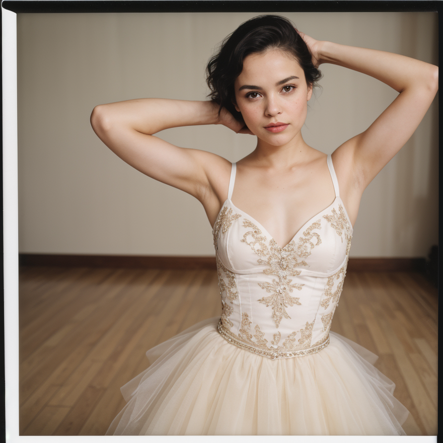 polaroid of a ballerina , vintage, expensive, high society, woman: (Norah Jones: .77), <lora:Polaroid_XL:1> <lora:jkSmallBreastsLite-v01:.61>