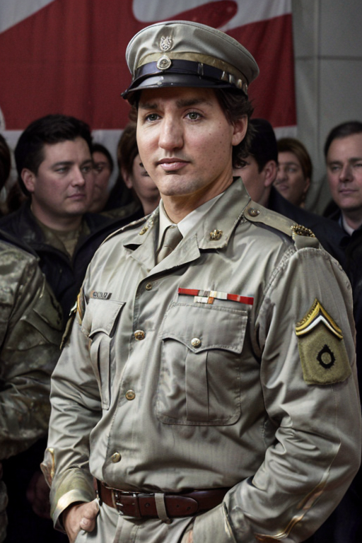 jtrudeau, dressed as a soldier, military uniform, <lora:justin_trudeau_5:0.6>