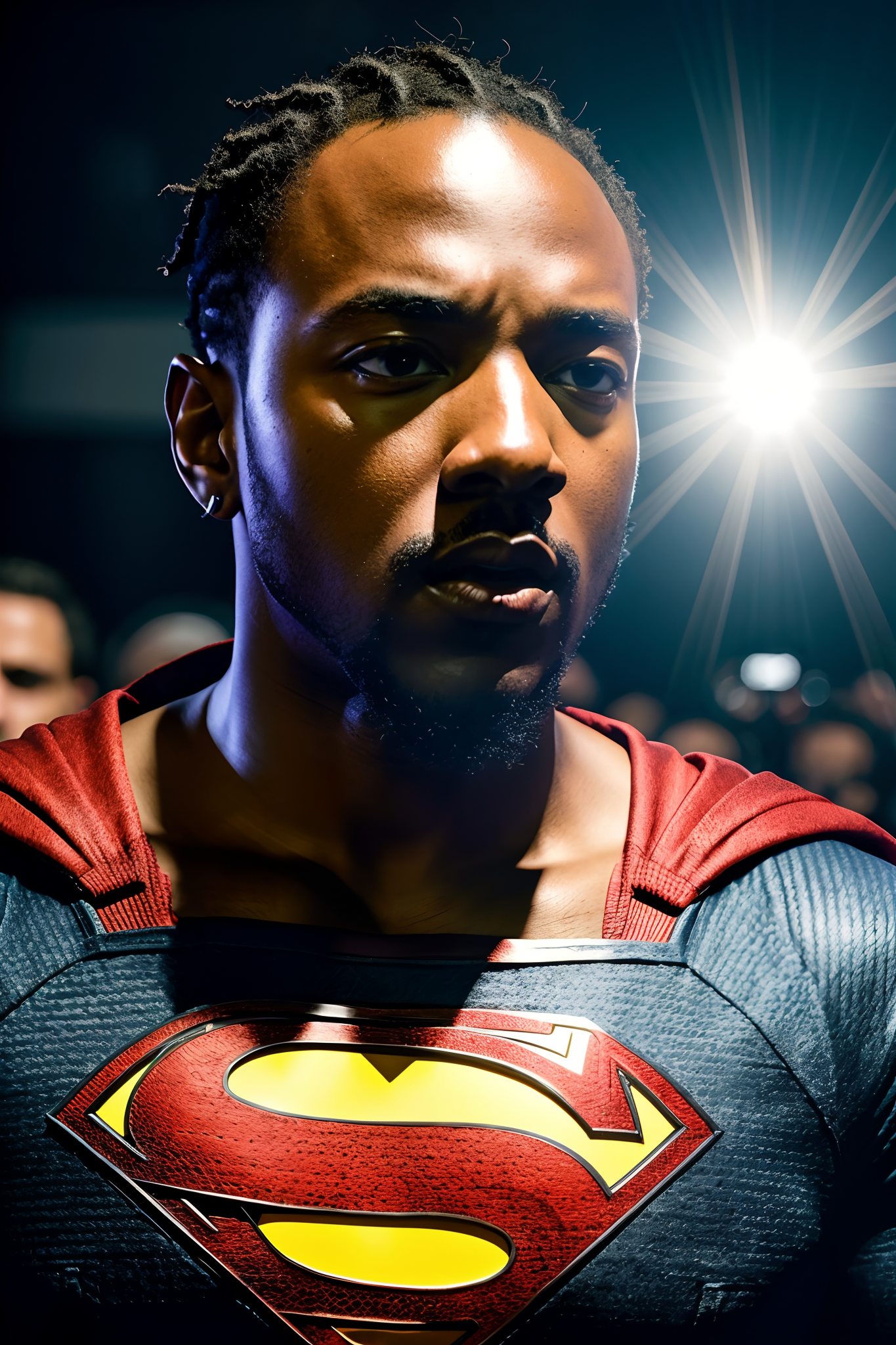 instagram photo, closeup face photo of Kendrick Lamar dressed as Superman, hard shadows