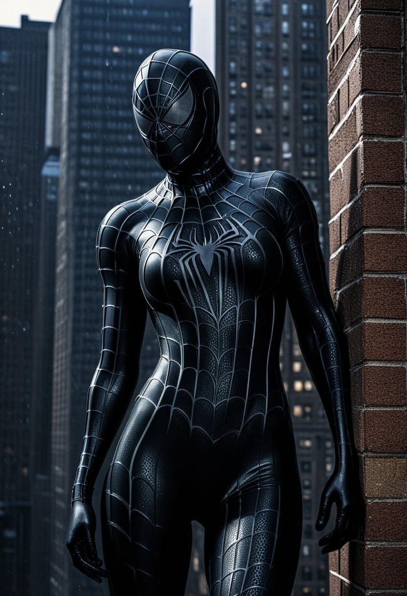 score_9, score_8_up, score_7_up, best quality, realistic, masterpiece, beautiful detail, hyperrealistic, night, ((1girl, woman body, big breasts)), amazing detailed full body portrait of a sexy girl, wearing a realistic and highly detailed black raimi spider-man suit, ((huge muscular girl)), ((wears black spiderman mask)), professional model wears ultra - detailed black raimi spider - man suit, ultra - detailed and grained black raimi spiderman suit, suit covered entire body and hand, black spiderman gloves, wet, (action pose on a building), (full body), (dirty skin), octane render, highly detailed, volumetric, dramatic lighting, (highest quality:1.1), (HDR:1.3), (top quality, best quality), realistic, high definition,