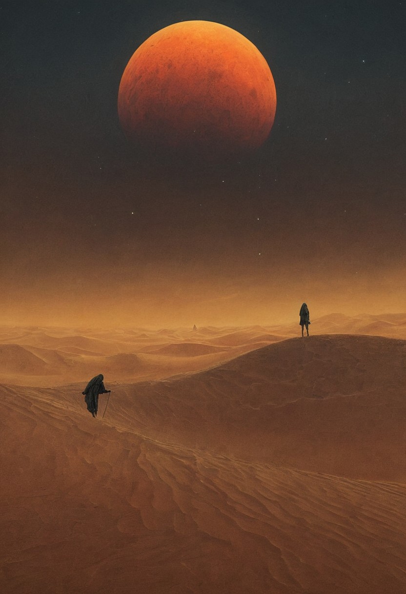 digital artwork by Beksinski, night, desert, epiCPhoto, moon, dune