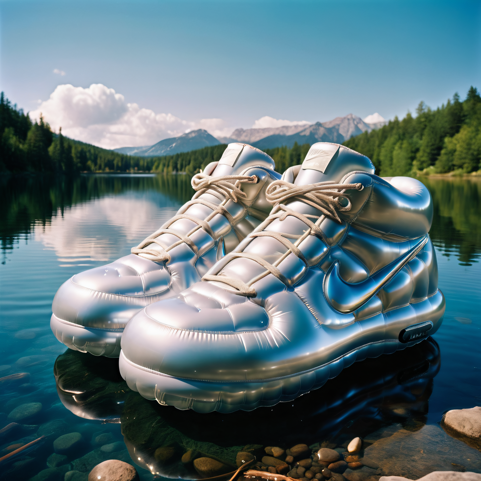 zynflatable, scenery, close-up, lake, portrait, inflatable shoes, nike, highly detailed, film grain, <lora:zy_Inflatable_World_Morph _v1:.7>