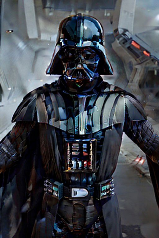 darth vader, darth vader helmet, <lora:Char_Sigmas_DarthVader:0.25>, IncrsNeverGonnaGiveUUp, smile, looking at viewer, microphone stand, upper body, black jacket, striped shirt, open mouth, <lora:NeverGonnaGiveUUp:1>