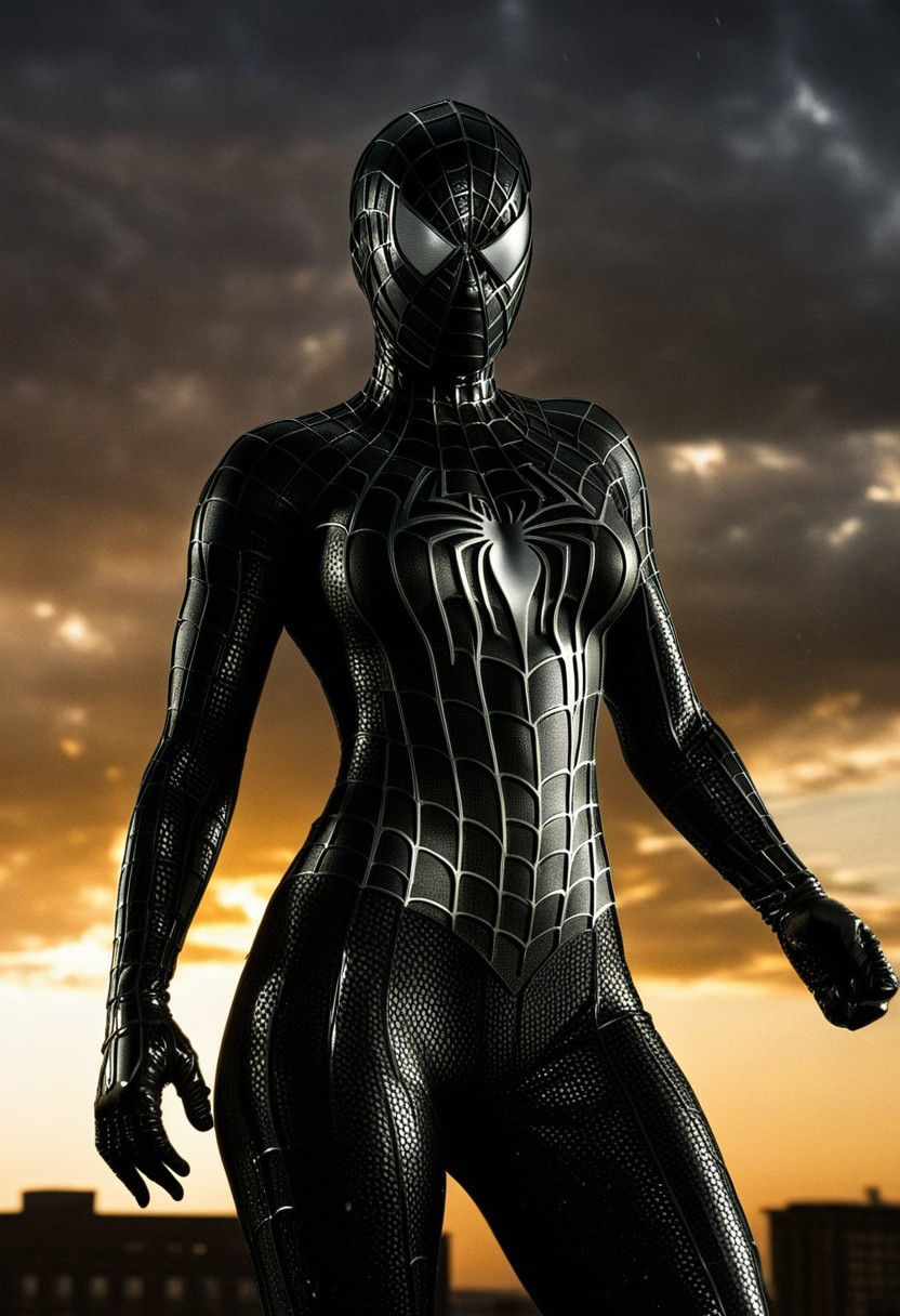 score_9, score_8_up, score_7_up, best quality, realistic, masterpiece, beautiful detail, hyperrealistic, afternoon sky, ((1girl, woman body, big breasts)), amazing detailed full body portrait of a beautiful girl, wearing a realistic and highly detailed black raimi spider-man suit, ((huge muscular girl)), ((wears black spiderman mask)), professional model wears ultra - detailed black raimi spider - man suit, ultra - detailed and grained black raimi spiderman suit, suit covered entire body and hand, black spiderman gloves, wet, (cute dance pose), (full body), (dirty skin), octane render, highly detailed, volumetric, dramatic lighting, (highest quality:1.1), (HDR:1.3), (top quality, best quality), realistic, high definition,