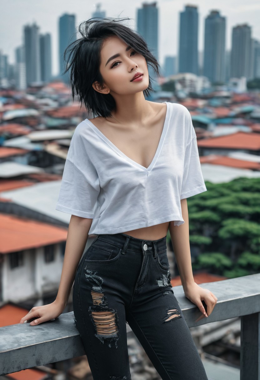 OverallDetailXL, score_9, score_8_up, score_7_up, score_6_up, masterpiece, 8k, highest quality, highest resolution, highest detail, very detailed clothings, intricate, ((the-same-person-only-from-now-on, set-up-on-the-following-description, always-the-same-look)), 1girl, indonesian, slim body, white skin, smooth body, wolf-cut messy hair, black hair, wearing urban outfit, candid pose, candid shot, candid photo, upper_body view, City background,