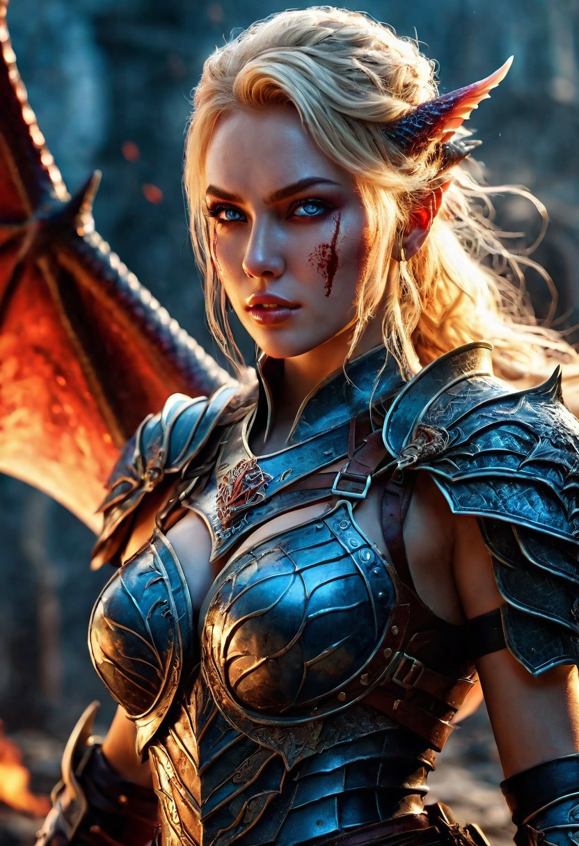 epic fantasy castel, beautiful realistic Dragon Rider warrior girl, flying in battle on a terrible dragon, 8k, ultra realistic, cinematic style, dark fantasy, blonde hair, flying in battle on a terrible dragon, bright colors, ultra-realistic body, perfect athletic body, Attractive girl, artgem, WLOP, realistic tight dirty bloody iron armor, beautiful Dragon Rider warrior girl, fire, defiant and seductive, covered in dirt and blood, cinematic colors Lighting, extremely detailed, 8K, wavy blonde hair, realistic very dirty bloody face, realistic blue eyes, beautiful Warrior girl on in cool outfit, hyper-detailed, hyper-realistic, Attractive 21 old years girl, Attractive, perfect athletic figure, handsome vampire pale bloody face, beautiful perfect detailed pupils, wet oily shiny skin, beautiful breasts, Dark Ages, intricate, smooth, sharp focus digital painting, Asymmetrical Balance, hyperdetailed painting, dynamic lighting, very detailed