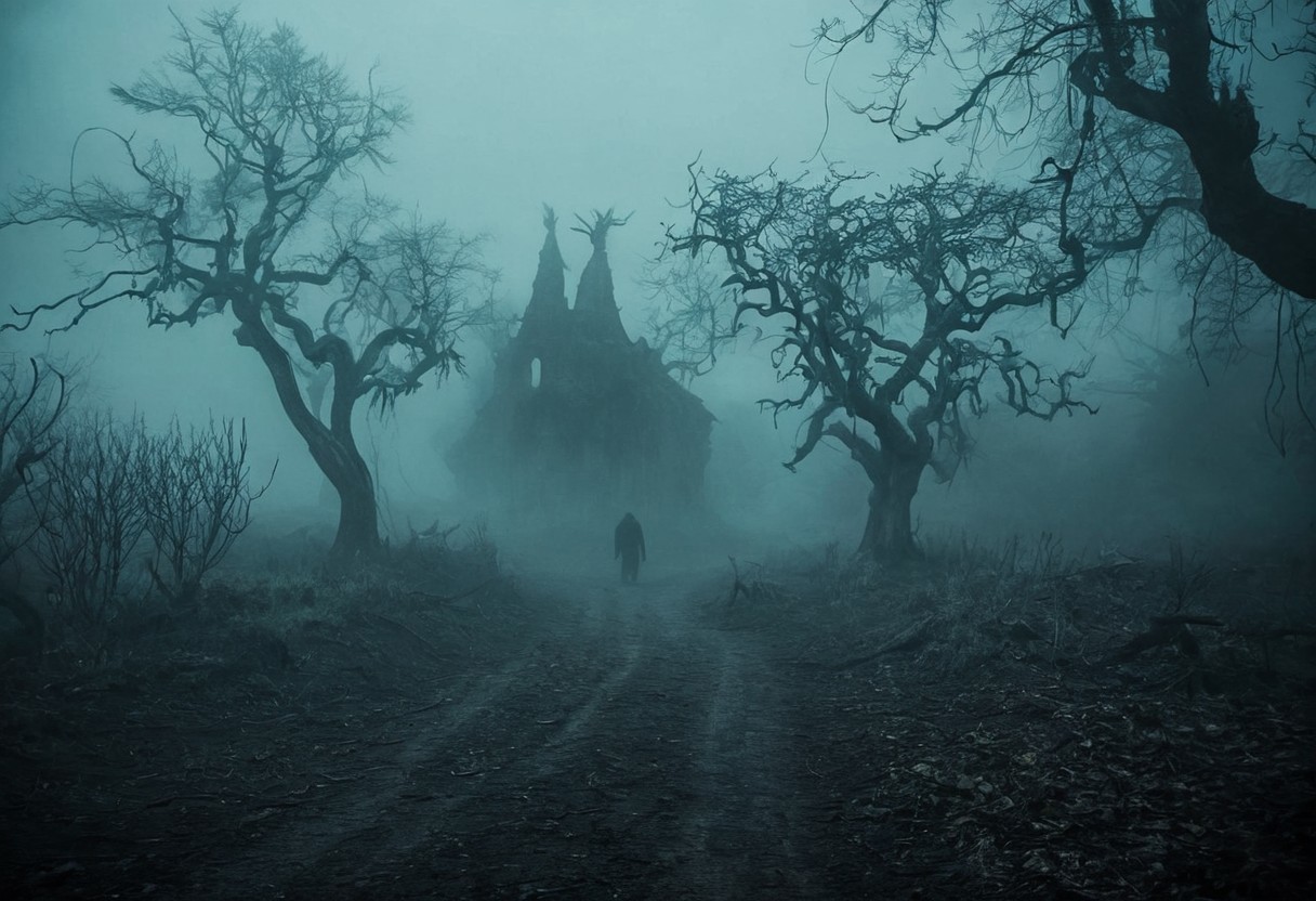 Dark shadows fantasy world, mist, fog. Strange Creatures