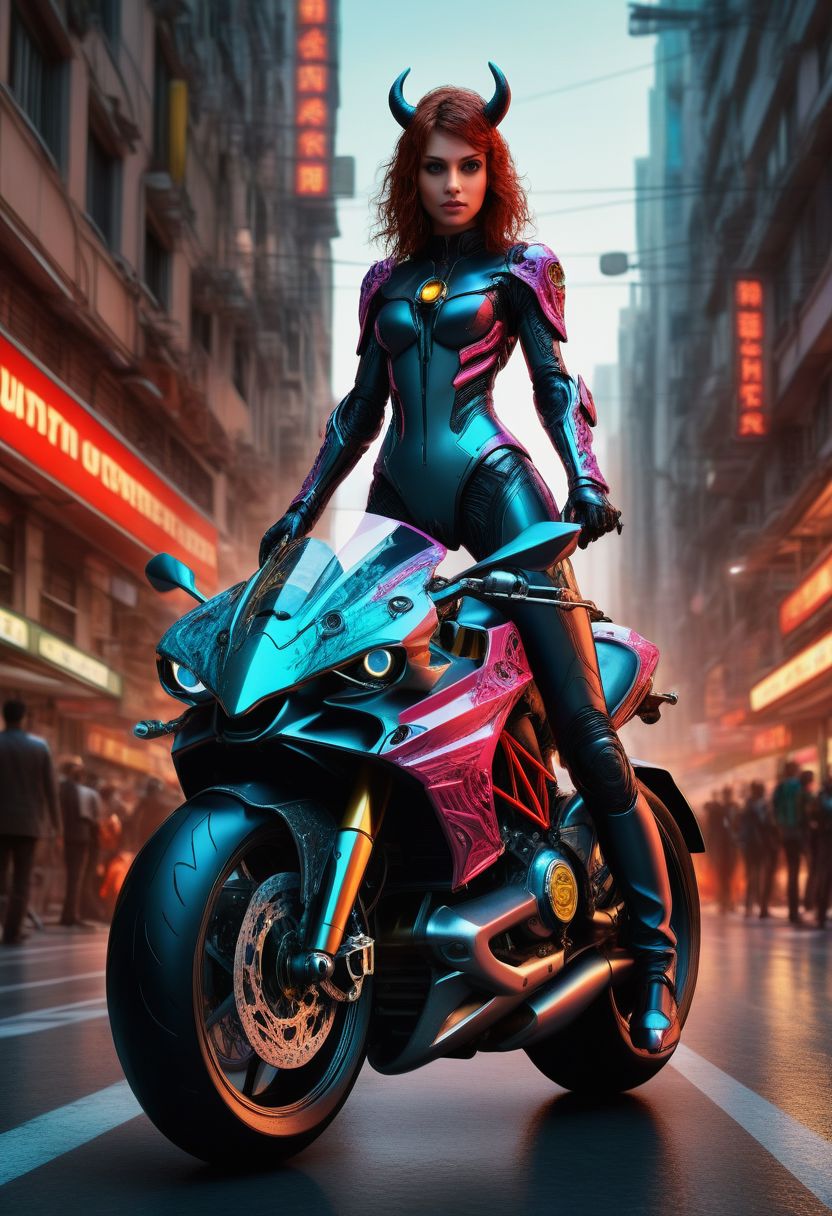 <lora:md2034:0.5> epic, dystopian terror, poster_\(medium\), Full length, distance, full body, perfect photograph, vivid detail, (( futuristic cybernetic devilgirl on a futuristic battle Ducati in a terrifying dystopia)) emblem, (simple_background:1.3), symmetry,(no_humans:1.3),, (masterpiece:1.3), (best_quality:1.3), (ultra_detailed:1.3), 8k, extremely_clear, realism, (ultrarealistic:1.3),, insane details, perfect anatomy, intricate details, hyperdetailed, ultra detailed, extreme detailed, highest detailed, high_detail, colorful, beautiful, hdr, photorealistic, highres, ultra_high_res, photography, aesthetic, extremely_delicate,