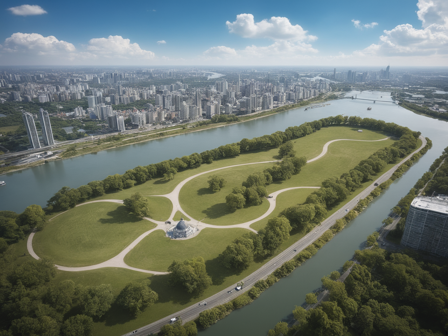 <lora:JJsBirdviewArchiSite_XL:1>,((Birdview Archi Site)) , ((best quality)),((masterpiece)),((realistic)), outdoors, cloud, blue sky, no humans, building, scenery, city, cityscape, skyscraper, center composition, park, car, tree, grass, lawn, river, boat,