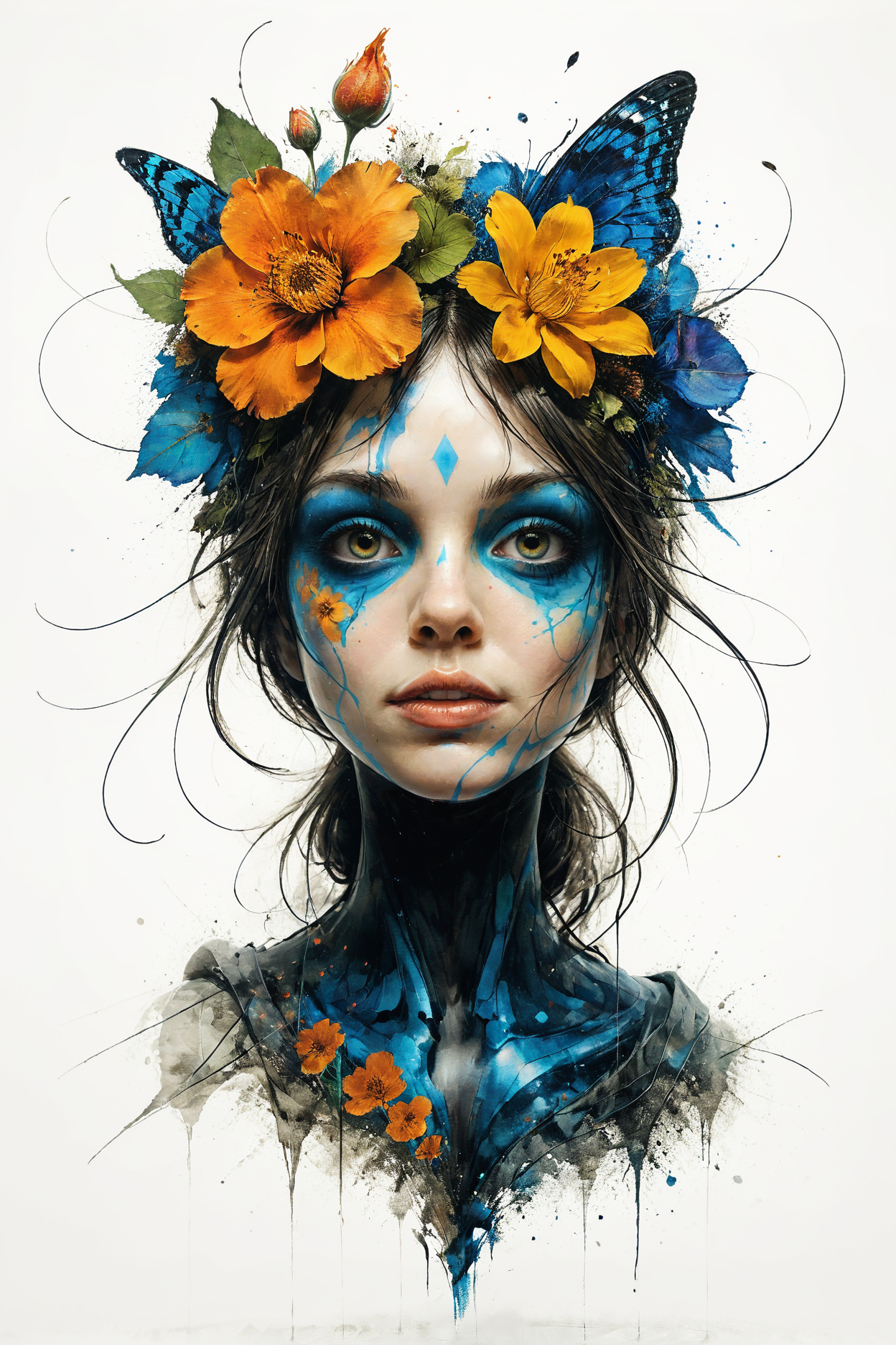 mysterious silhouette flowery woman, by Minjae Lee, Carne Griffiths, Emily Kell, Steve McCurry, Geoffroy Thoorens, Aaron Horkey, Jordan Grimmer, Greg Rutkowski, amazing depth, double exposure, surreal, geometric patterns, intricately detailed, bokeh, perfect balanced, deep fine borders, artistic photorealism , smooth, great masterwork by head of prompt engineering <lora:add-detail-xl:2> <lora:xl_shuimo:0.7> ink wash painting <lora:Cute_Drawing:0.55> <lora:hyperkraximalism_v1-1:0.25>