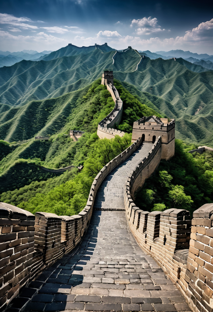 a highly detailed hdr image of Great Wall of China against a breathtaking natural backdrop, incorporating realistic rendering techniques to evoke a sense of awe and wonder