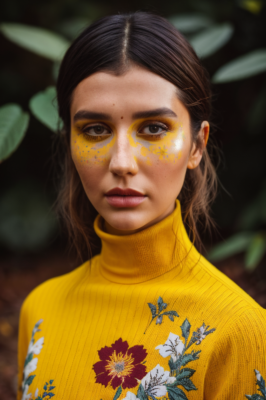 A stunning intricate full color up close portrait of ksh, wearing a yellow turtleneck with floral design pattern on it, epic character composition, by ilya kuvshinov, alessio albi, nina masic, sharp focus, natural lighting, subsurface scattering, f2, 35mm,<lora:Kesha-RealVision-V1.0:1>