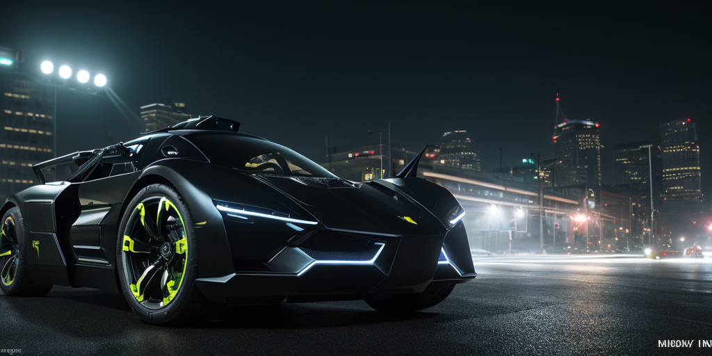 cinematic film still breathtaking (Futuristic Black-Batmobile),side view,intricate details, armored car,missile launcher,oversized tires Arkham city streets, bright neon lights, multicolored lights. vivid colors, vivid contrast, bold colors, white paved road . award-winning, professional, highly detailed . shallow depth of field, vignette, highly detailed, high budget, bokeh, cinemascope, moody, epic, gorgeous, film grain, grainy