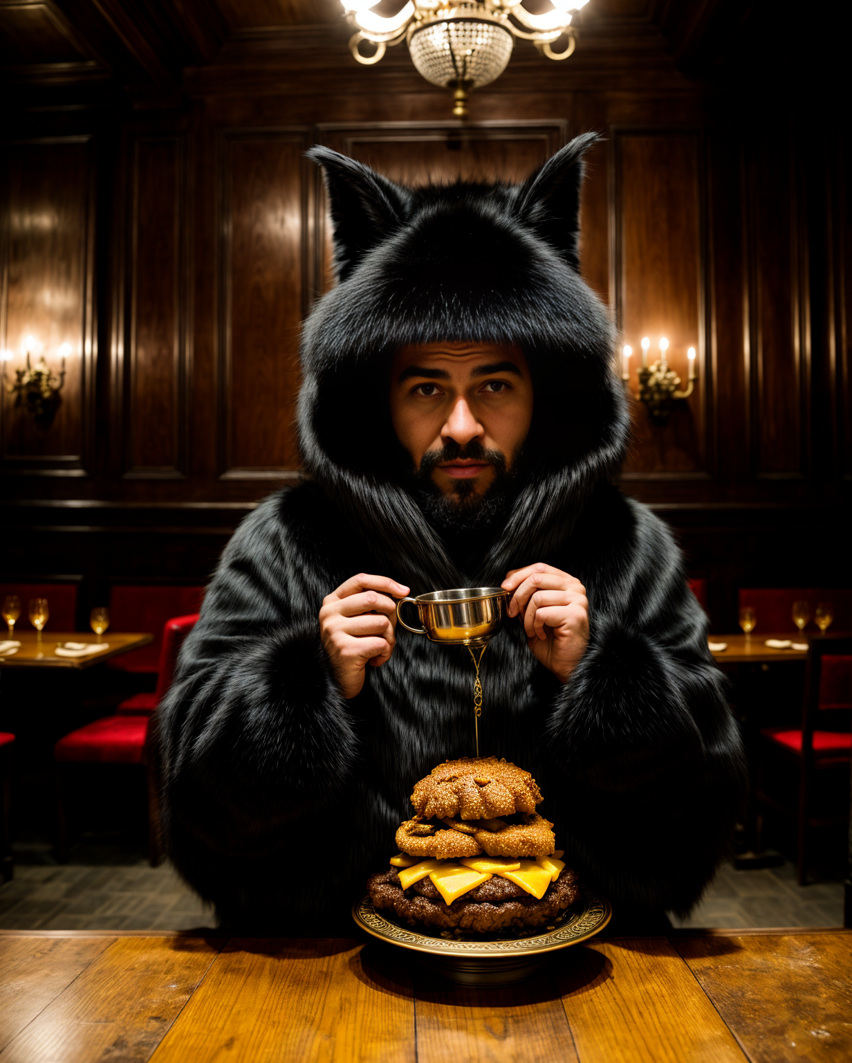 RAW photo, funny furry Chimaerain a Dining room at club, while a dragon terrorizes a medieval kingdom, (high detailed skin:1.2), 8k uhd, dslr, soft lighting, high quality, film grain, Fujifilm XT3, <lora:add_detail:1>