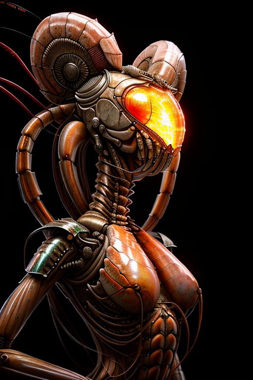 portrait of pearly crab female (long neck, slender arms)) massive headdress, bio armor, (luminesce glowing) floating particles, insect textures, scifi,