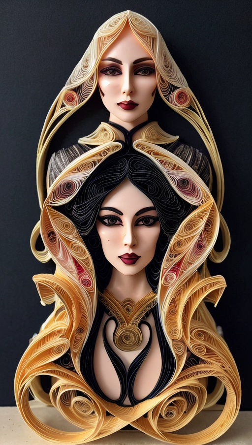 Paper quilling art of woman,cloaked, yearning to explore. Gradient mastery, ink, gold leaf, and alcohol ink elements. Cinematic realism, luminism, and pollution-choked industrial landscape <lora:Vector_illustration_V2:1> . Intricate, delicate, curling, rolling, shaping, coiling, loops, 3D, dimensional, ornamental