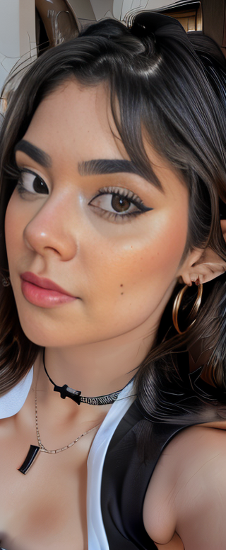 <lora:lyndaparraV2-15:1> a woman , woman in a casual suit, taking a selfie, with black hair, pretty face