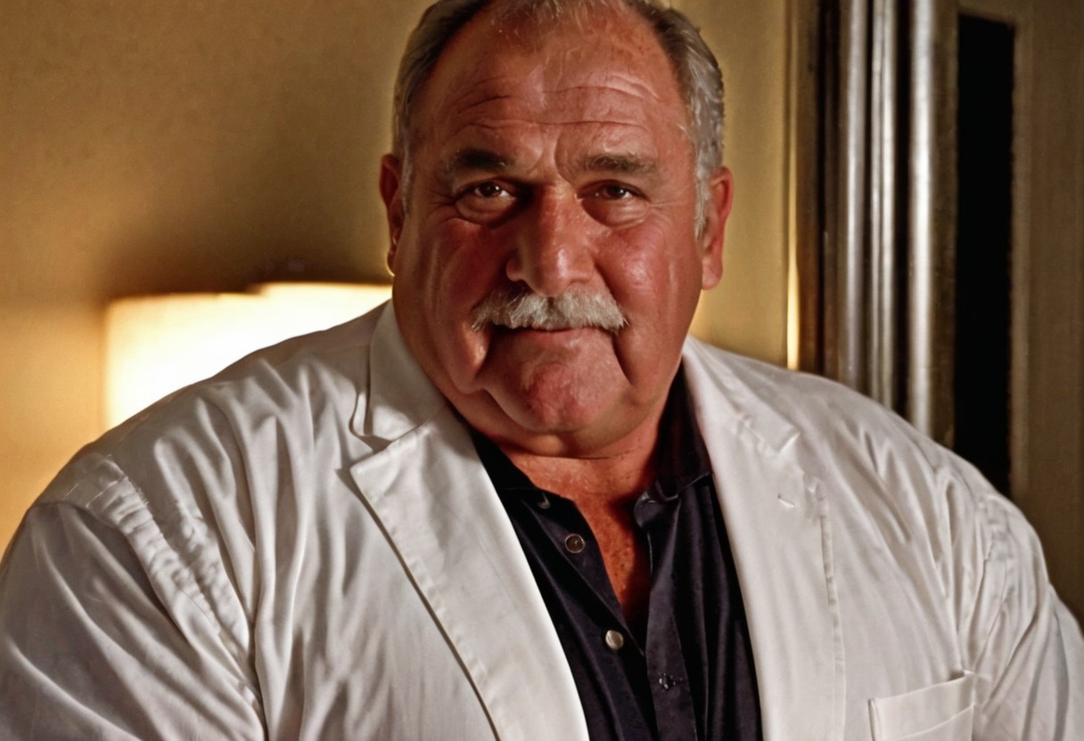 romantic flirty expression, intimate, cinematic hazey atmosphere, photograph, romantic movie scene, old mature man, old musclechub daddy, tanned skin, sweaty skin, sweating, oily skin, doublechin, handsome chubby old face, gentle smile, white latex undershirt muslceshirt tanktop, in a dark office at night, nighttime, dim, janitor, hobo, construction worker, trucker, brute, wise, barbarian, berserker, leader, boss, ((flexing his massive biceps, tanned old bodybuilder))