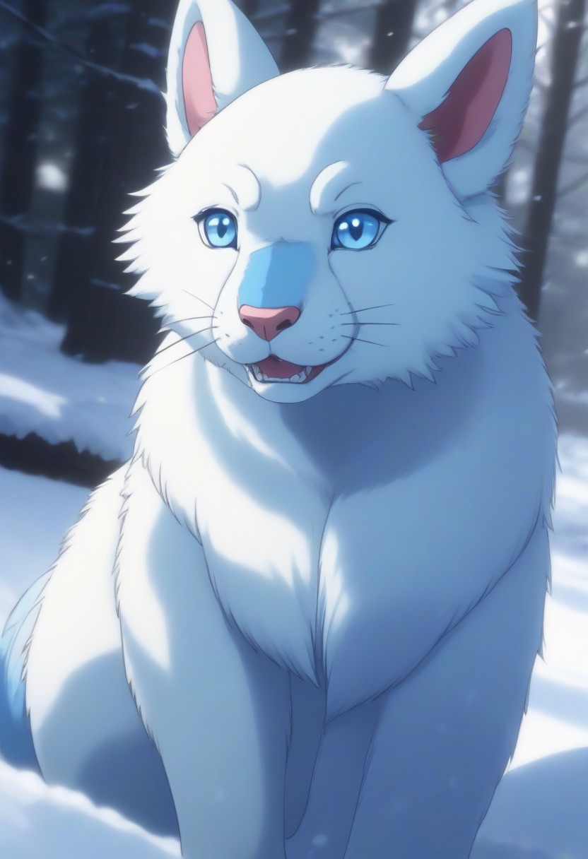 score_9, score_8_up, score_7_up, source_anime BREAK winter background, snow, ice Chillet_Palworld, feral, light blue fur, blue eyes, white underbelly, blue back spikes, blue chest markings, blue spots, blue-tipped ears, whiskers, long animal ears, long tail, lying, on stomach smile, looking at viewer, smile detailed background, beautiful scenery <lora:add-detail-xl:1>, anime screencap:1.5