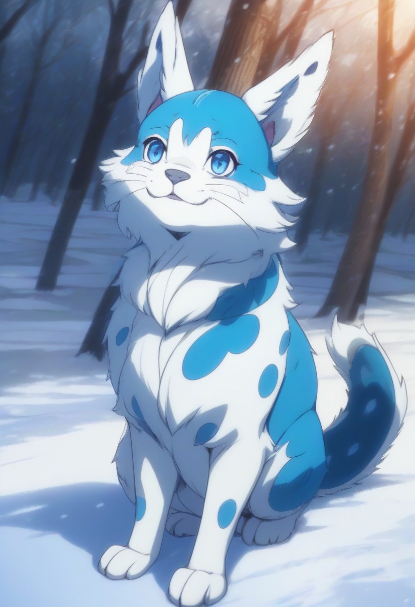 score_9, score_8_up, score_7_up, source_anime BREAK winter background, snow, ice Chillet_Palworld, feral, light blue fur, blue eyes, white underbelly, blue back spikes, blue chest markings, blue spots, blue-tipped ears, whiskers, long animal ears, long tail, lying, on stomach smile, looking at viewer, smile detailed background, beautiful scenery <lora:add-detail-xl:1>, anime screencap:1.5