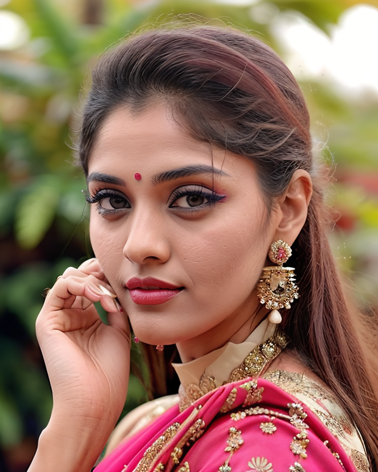 ultra-realistic hires photo of a (supu woman), looking looking at viewer, elegant high neck Saree, fashion shoot, Extreme close-up camera angle, ((lipstick)), fashion photography with beautiful bokeh <lora:supu_Surabhi_Puranik_old_adafactor:1>