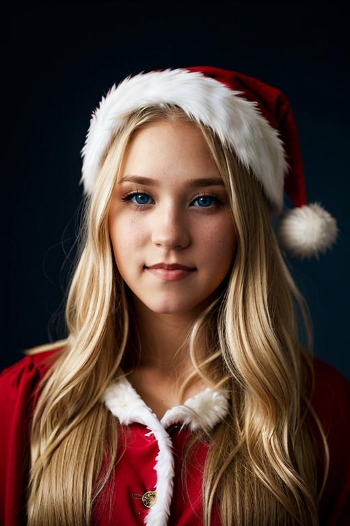 <lora:Emily_Osment:1> e1873o, 1girl, solo, long_hair, blue_eyes, blonde_hair, santa outfit