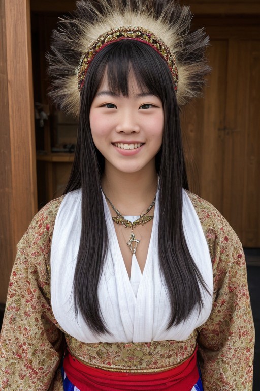 Realistic smiling sexy Greenland girl in traditional clothing